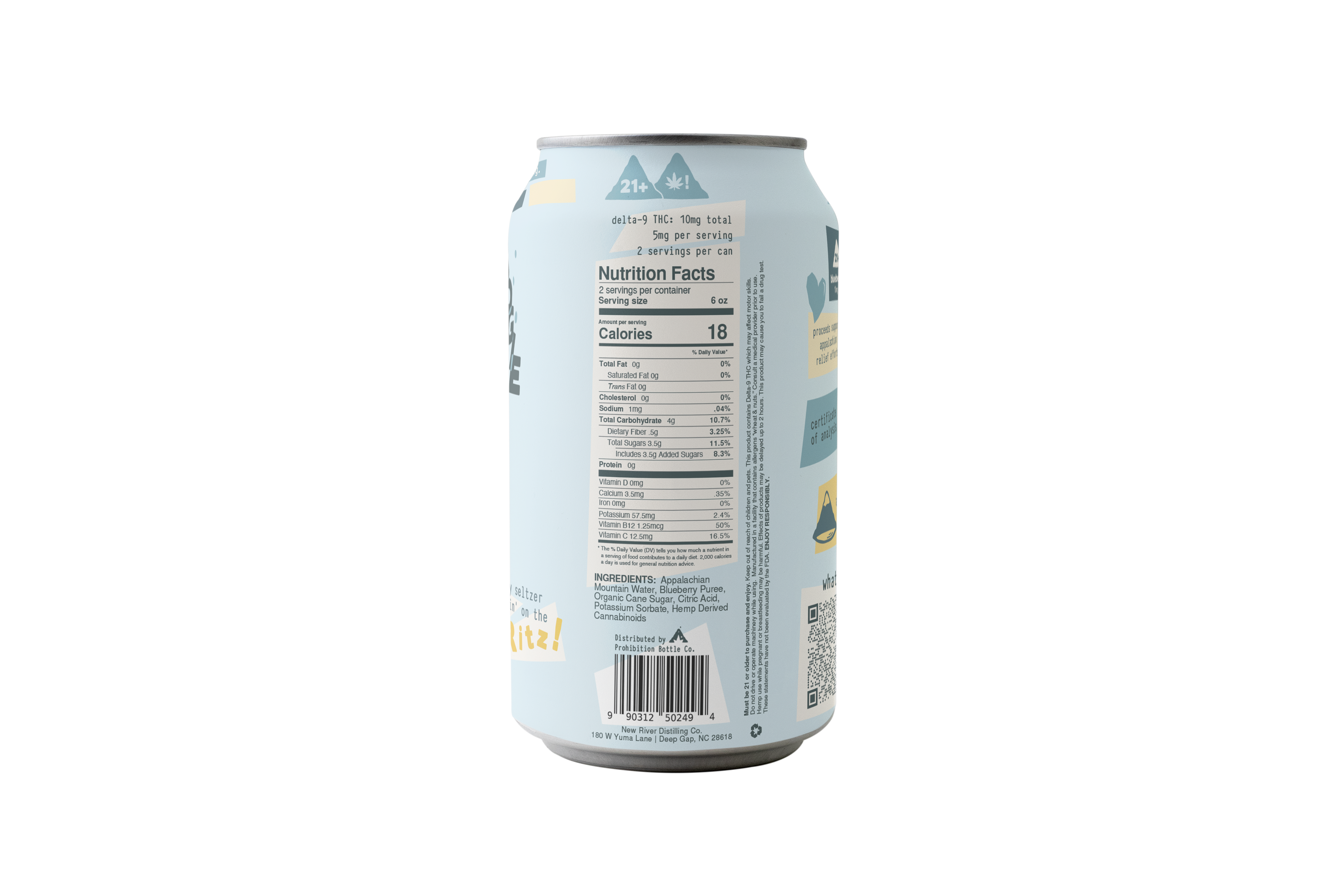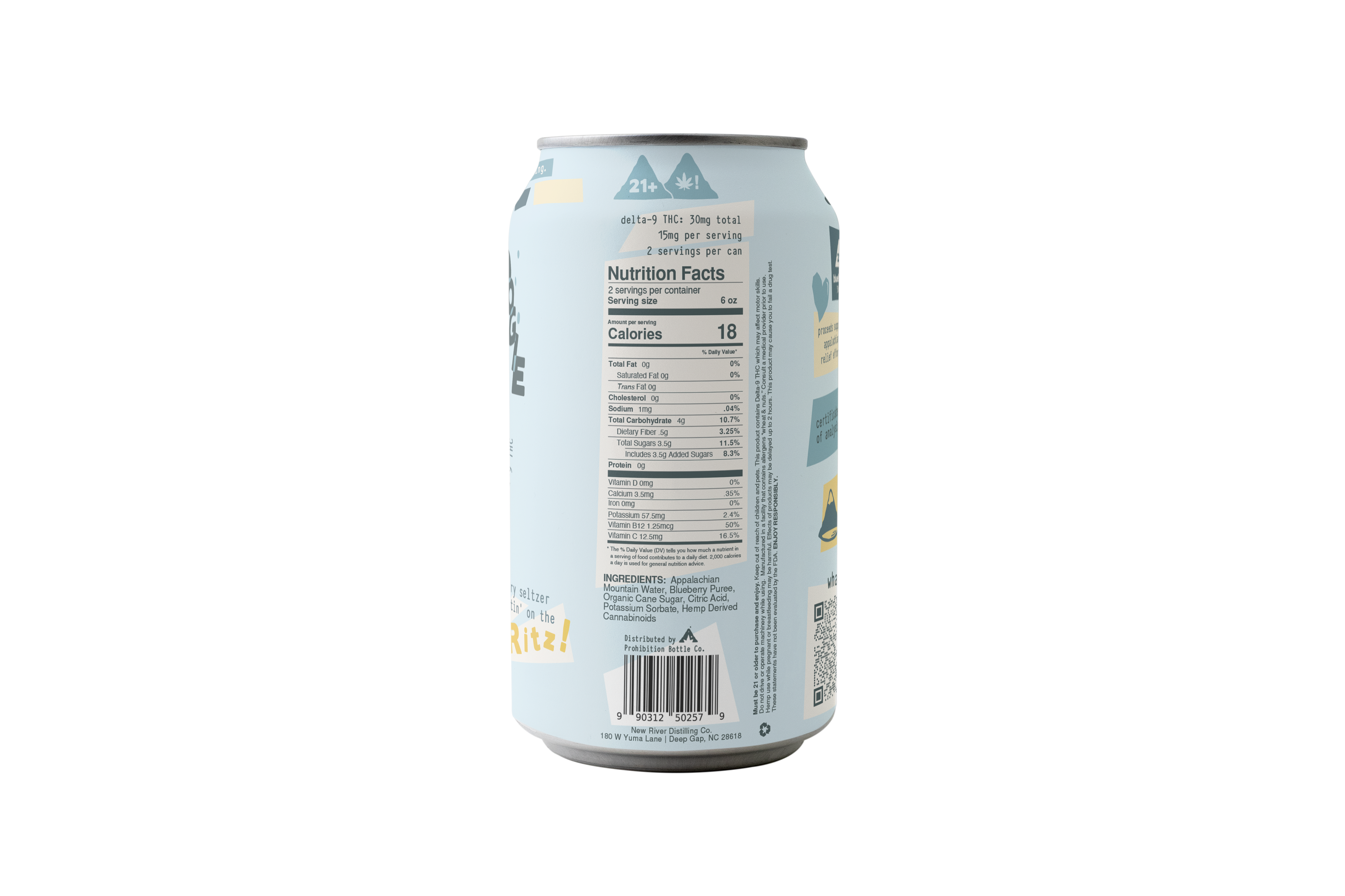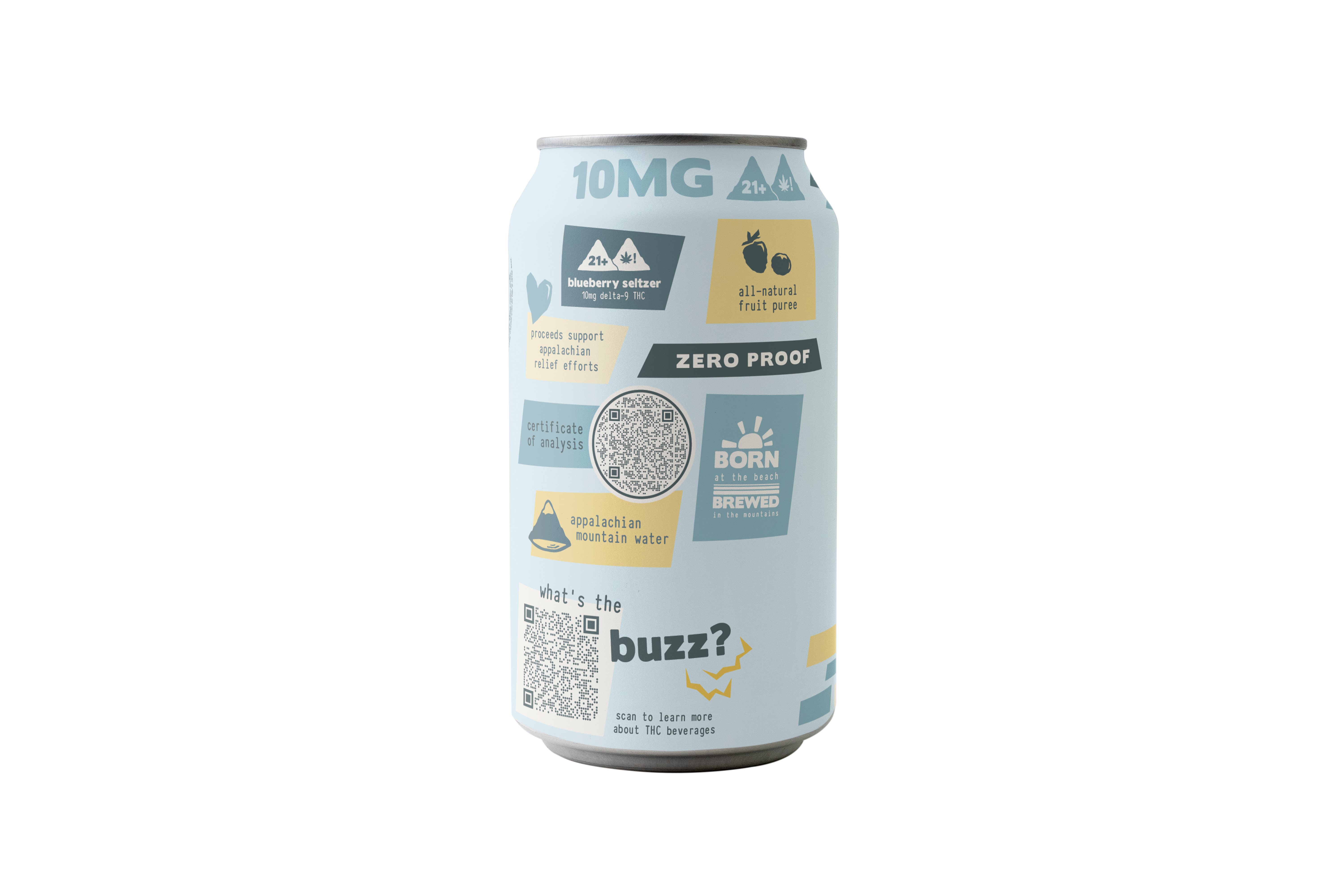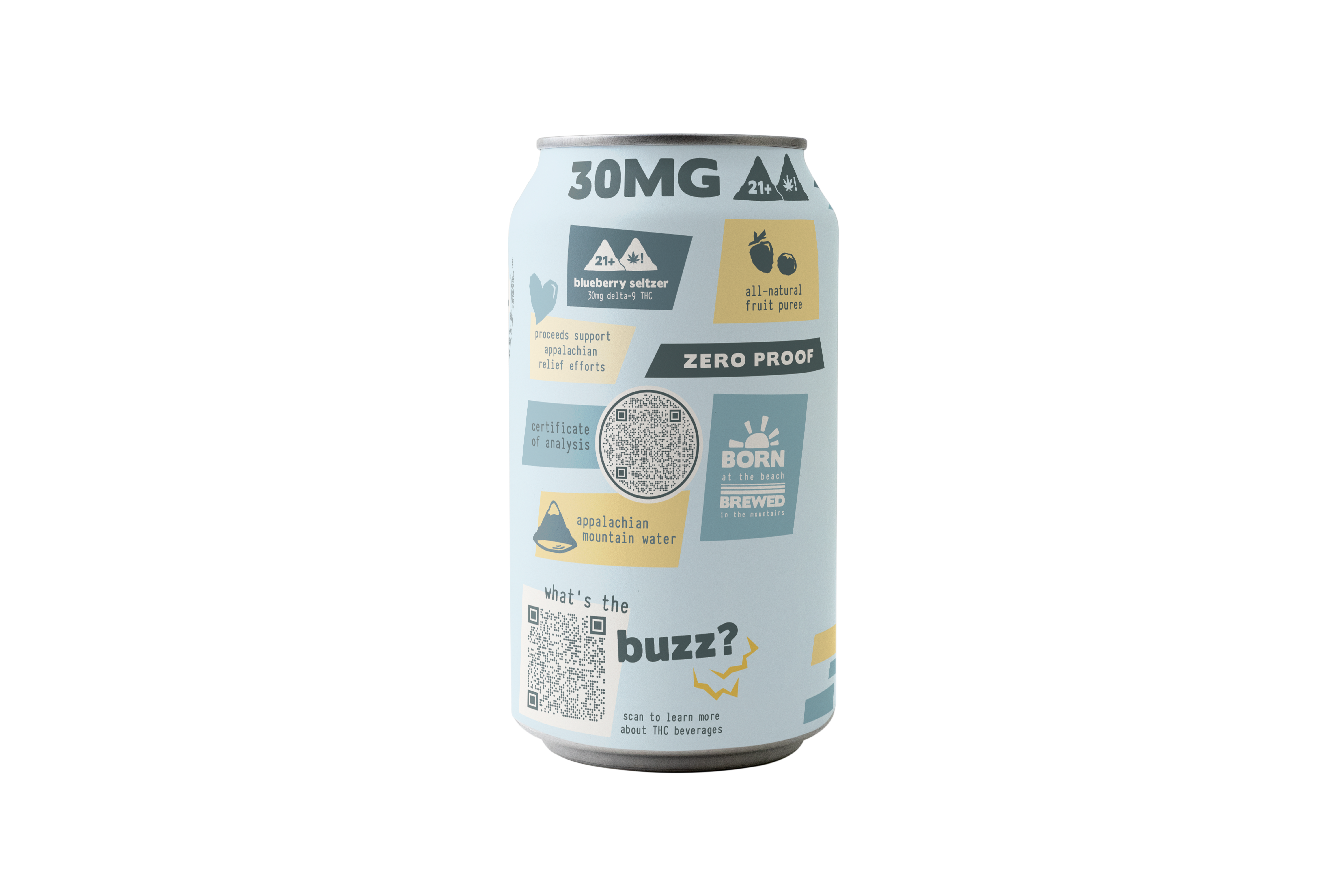 The Blue Betty Boogie tastes like the handful of blueberries you picked on a hike, and feels like splashing cold river water on a hot day. This lightly carbonated seltzer is made of Appalachian mountain water and real blueberry purée. Refreshing and crafted for clarity, our blueberry seltzer is available in 10mg and 30mg of delta-9. This naturally uplifting drink is the perfect alcohol alternative for social settings or pure relaxation.